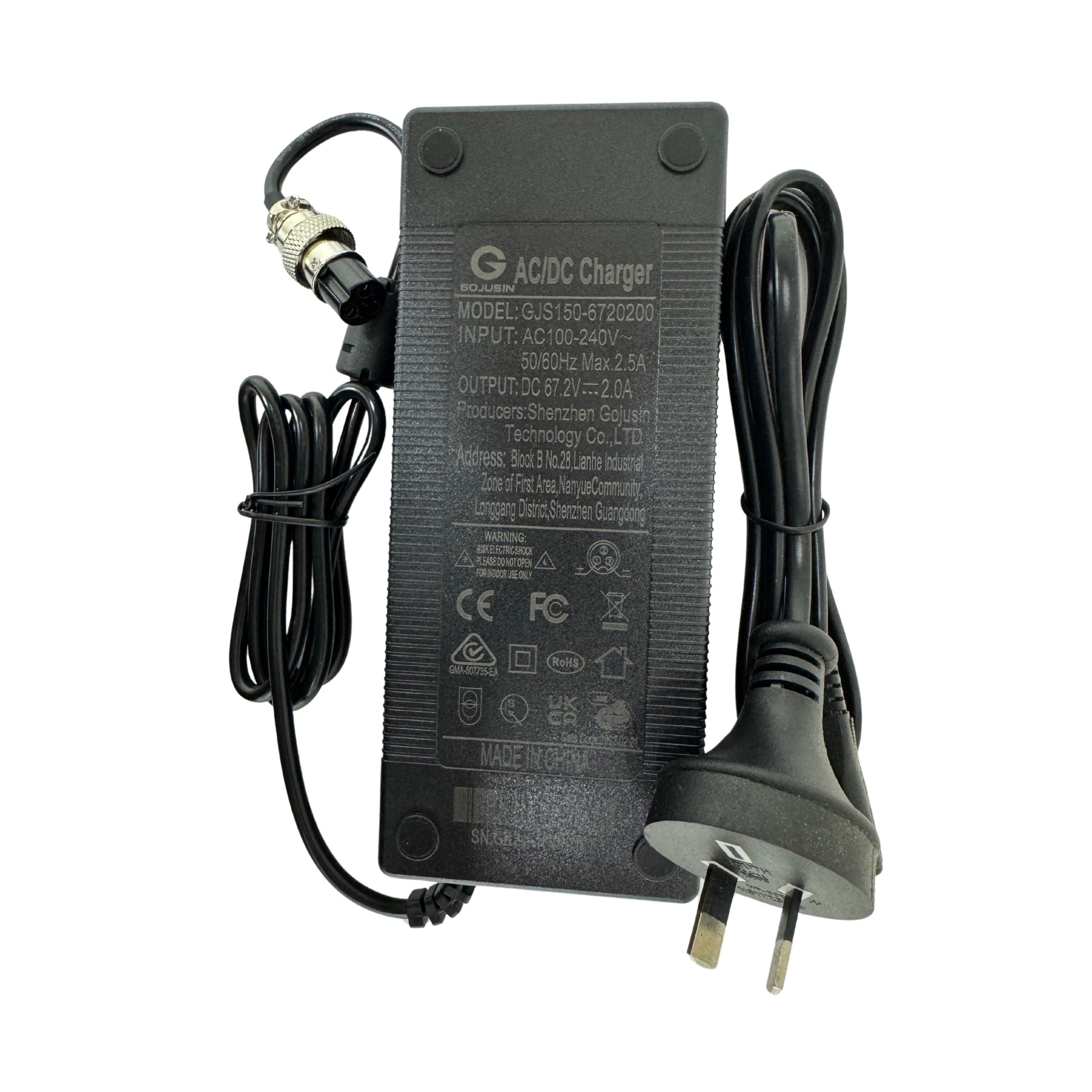 Keep your rides powered with our 60V (67.2V Max) 2A E-Scooter Charger (3-Pin) – the perfect replacement or spare charger for most 60V electric scooters. Built with high-quality components and certified to meet Australian safety standards, this charger delivers consistent, efficient, and safe charging every time.